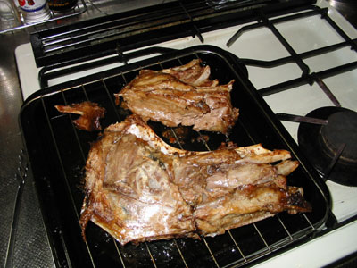 包んみ、バーベキュー用のコンロで2〜3時間蒸し焼き