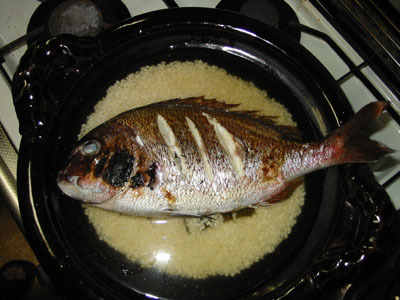 まず鯛は塩をふり、グリルで両面を焼きます。